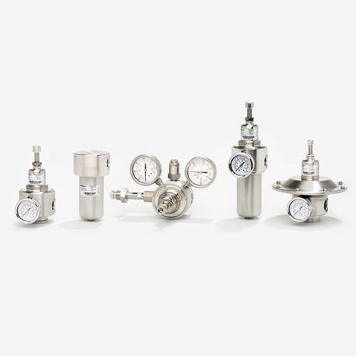 50 pm, optionally 5 pm. made of stainless Steel, coalescing filer 0.1 pm at 99,99%