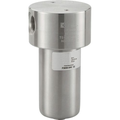 Filter with bowl without sight glass, completely made of stainless steel, extremely robust, suitable for compressed air, gases or liquids. Application examples are the chemistry, petroleum processing as well as food industry and medical technology.