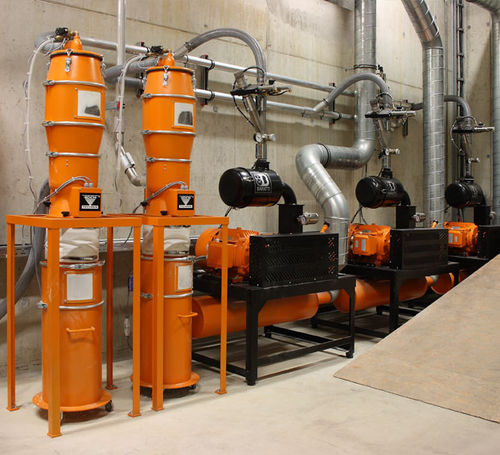 The KOCH safety filter automatically cleans the dust-laden conveying air and thus protects the vacuum generators installed behind it.
