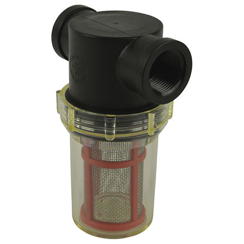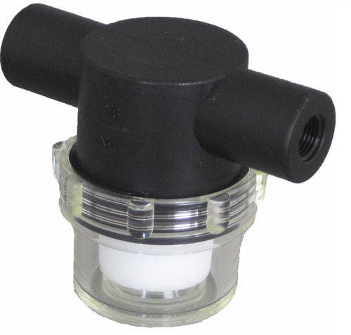 Plastic vacuum filter 1/8 NPT thread, Polypropylene body, clear PA bowl, Buna-N gasket, 10 micron Polyethylene filter element.