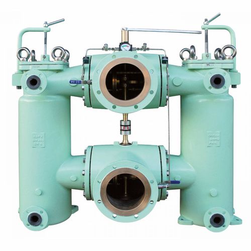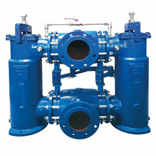The KDF duplex filter can be used universally as a coarse and fine filter on the suction or on the pressure side. Filter operation is maintained without interruptions during the cleaning phase. The double filter is cast as one part consists of two identical single filters which can be operated alternatively or in parallel via a changeover fitting.