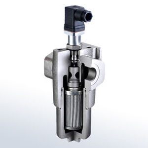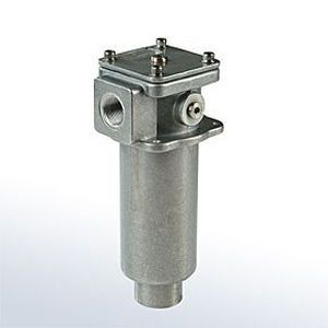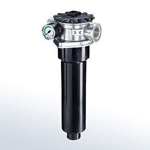 In line high pressure filter designed for sandwich plate mounting, for hydraulic and lubricating systems, available in RH or LH options; max. nominal flow 30 l/min; max. operating pressure 315 bar; head and bowl in steel; bypass, reverse flow, non-return or multi-function valve; visual, electrical or combined differential pressure indicators.