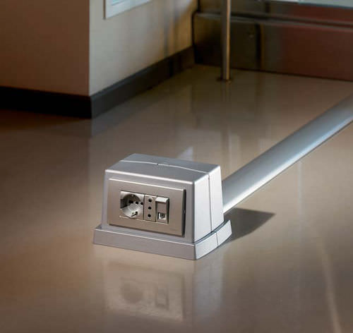 the trunking with aluminium cover with accessories like, angles and socket turrett. This trunking can be used also on the wall to cover cables and for distribution.