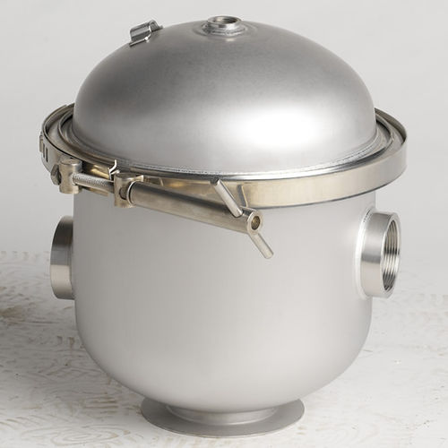 Two couplings are welded onto the upper hatch and on the lower convex bottom for air inlet and venting and to empty the prefilter. The top hatch is closed by a CLAMP with lever and a double adjusting clamp for all the other models; the prefilters can be supplied with a series of clamps for closure on request. In both cases the closure is extremely simple and reliable. All the filters are pickled and passivated by immersion in special tanks after the manufacturing process.