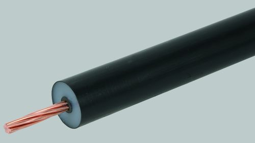 High-voltage-resistant, insulated down conductor for maintaining the separation distance to electrically conductive parts according to IEC/EN 62305-3.