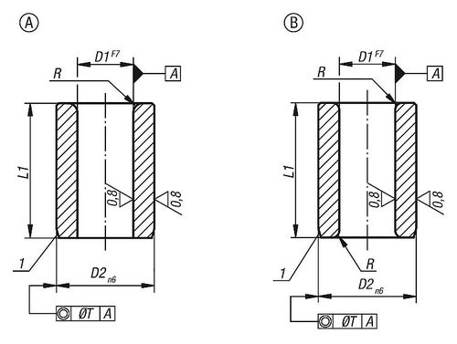 Material:Special low carbon steelVersion:Hardened to 740 ±80 HV 10 and ground.Note:From diameter D1 over 15 mm size increases are 0.5 mm.Drawing reference: